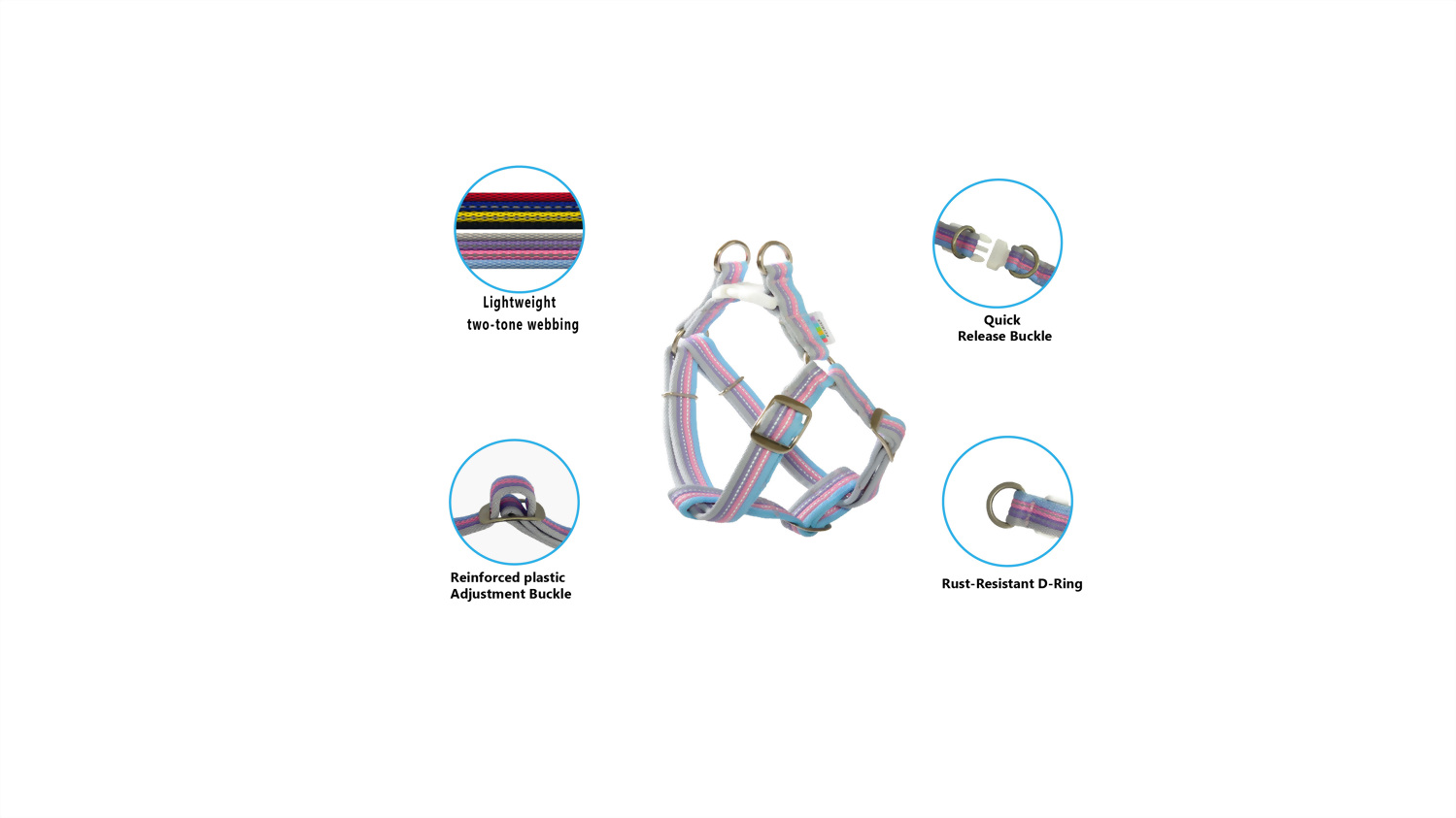 Adjustable, Side release buckle, Gunmetal D-ring, Sturdy & Vibrant.